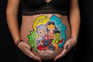 Estas sesiones son de las mas solicitadas, ya es bonito guardar el recuerdo del embarazo de la mama pero si encima personalizamos la tripita con un dibujo caracterizado las fotos quedan muy originales y el recuerdo es espectacular, tenéis la opción de elegir entre nuestros bocetos pero igualmente podéis traer vosotros el dibujo a pintar o dar vuestras ideas y nuestros especialistas se pondrán a ello, se trata de una sesión muy divertida, igualmente aconsejamos que se realicen a partir de la semana 28 pero sois vosotras las que elegís cuando realizarlas, va en gusto de cada uno, y lo que nosotros queremos es que vosotras os sintáis lo más a gusto posible en todo momento, estas fotos quedan muy bonitas y son muy divertidas.
