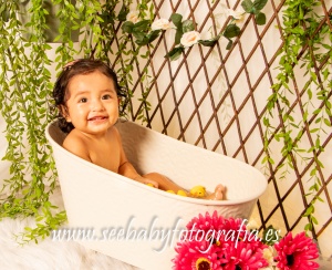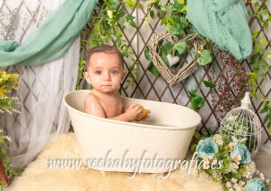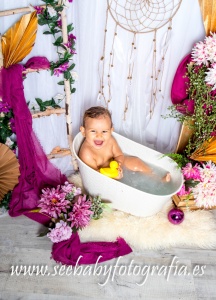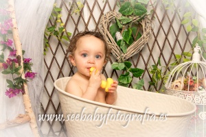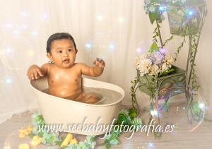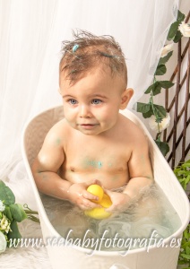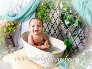 Bañito final opcional 45€, con otro escenario especial para el bañito, les encanta jugar en el bañito, completamos la sesión con otro escenario al que les gusta mucho y se van limpitos. Al coger el bañito también se amplían las fotografías de la sesión a 40.